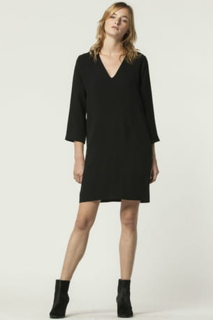 Robe noire à manches trois quarts en polyester de Toupy