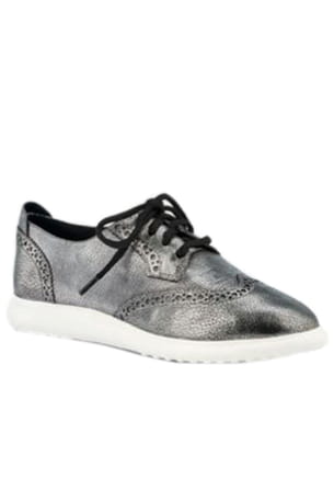 Baskets façon derbies en cuir argenté avec semelle blanche de What For