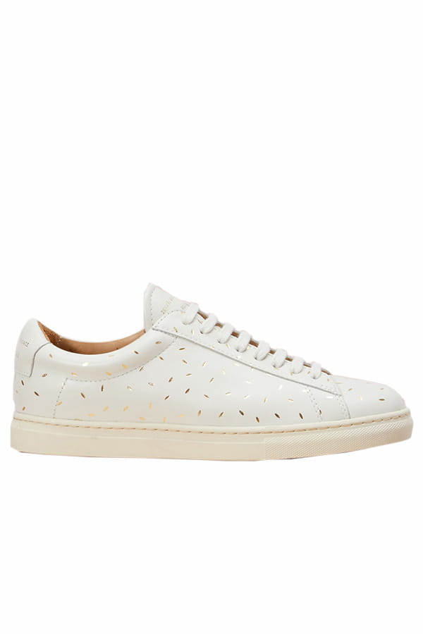 Baskets à confettis dorés avec dessin signature de Supakitch sur la semelle intérieure de Zespa