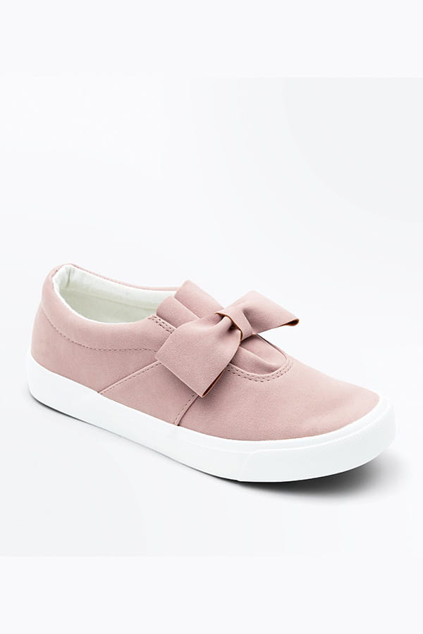 Baskets slip-on en suédine vieux rose avec un noeud de New Look