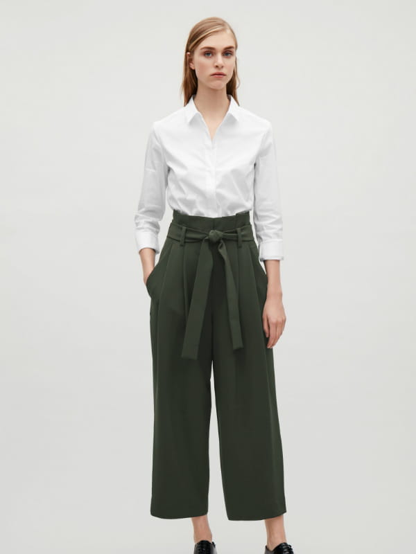 Pantalon vert en crêpe taille haute resserré à la taille de Cos