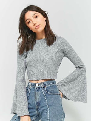 Top court gris en maille côtelée à manches évasées de Pins & Needles chez Urban Outfitters