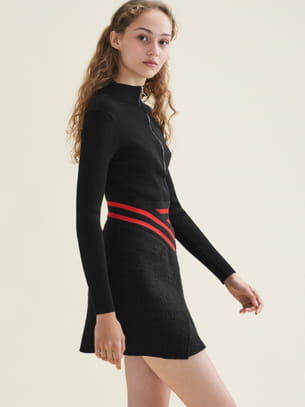 Jupe asymétrique en tweed avec ceinture en bord côte bicolore de Maje