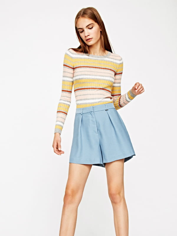 Jupe courte bleu ciel en polyester avec pinces sur le devant de Pepe Jeans