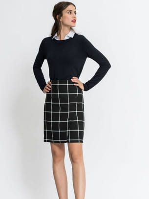 Jupe rétro à carreaux avec effet fermeture portefeuille de Caroll