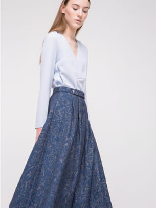 Jupe midi taille haute en jacquard coton avec dessin exclusif de Chacok