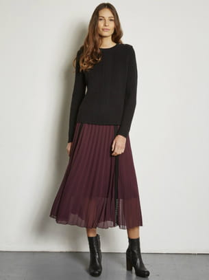 Jupe midi plissée en coloris lie de vin avec insert de dentelles de Ekyog