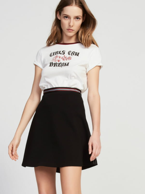 Jupe courte en matière gauffrée avec bandes colorées a la taille de Sandro