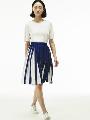 Jupe midi plissée en jersey bicolore bleu de méthylène et blanc farine de Lacoste
