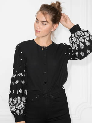 Blouse noire en coton avec manches ballons brodées de & Other Stories
