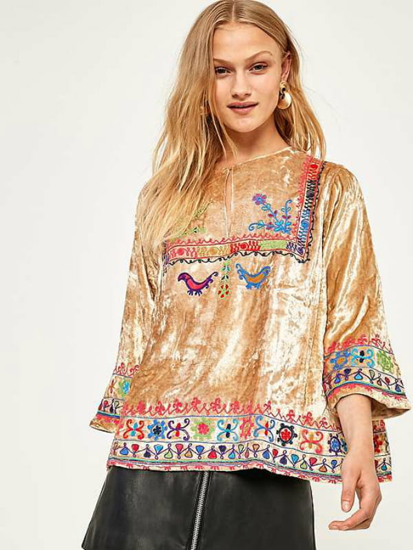 Blouse dorée en velours et à broderies de Victoria sur Urban Outfitters