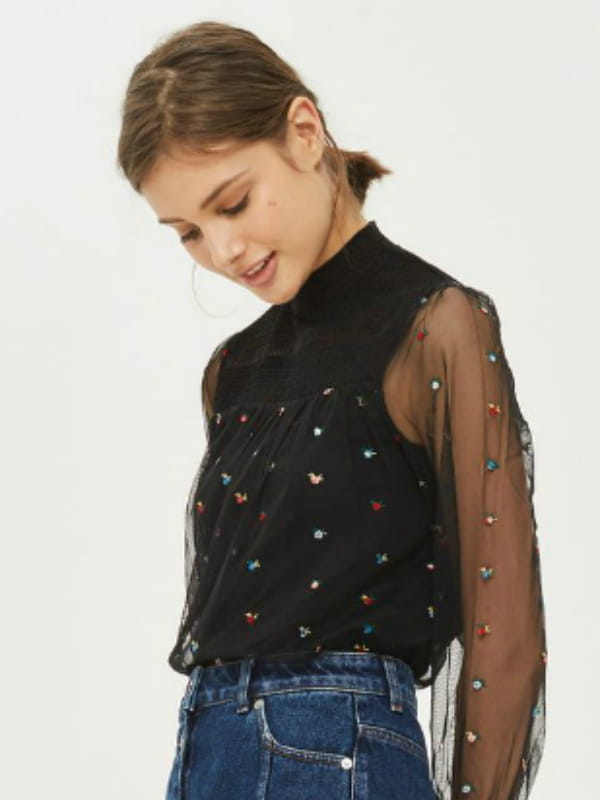 Chemisier en polyester avec broderies colorées et manches transparentes de Topshop