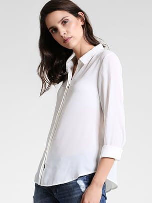 Chemisier blanc minimaliste en polyester avec patte de boutonnage invisible de Zalando Essentials