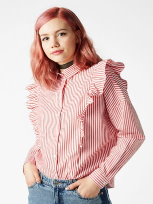 Chemisier à rayures rouges et volants en coton organique de Monki