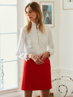 Chemisier blanc en coton avec plis et col en guipure de Claudie Pierlot