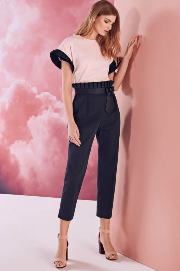 Ensemble pantalon taille haute marine et top à manches plisses rose pâle de marine de Ted Baker