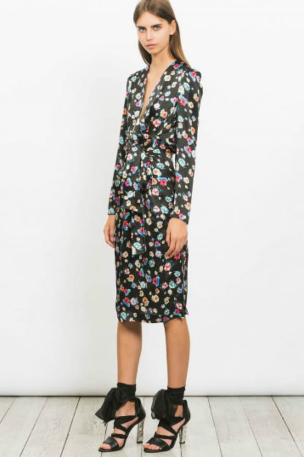 Robe en soie imprimée à manches longues noire de Paul and Joe