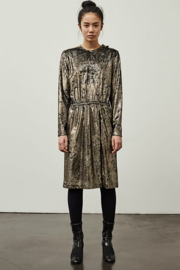 Robe à manches longues en velours bronze de Polder
