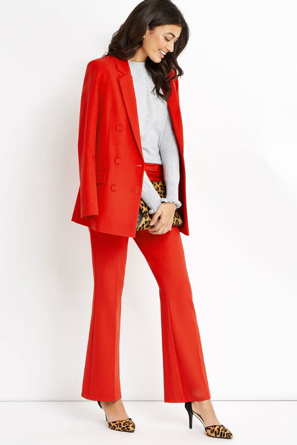 Veste de costume et pantalon évasé assorti rouge de Oasis