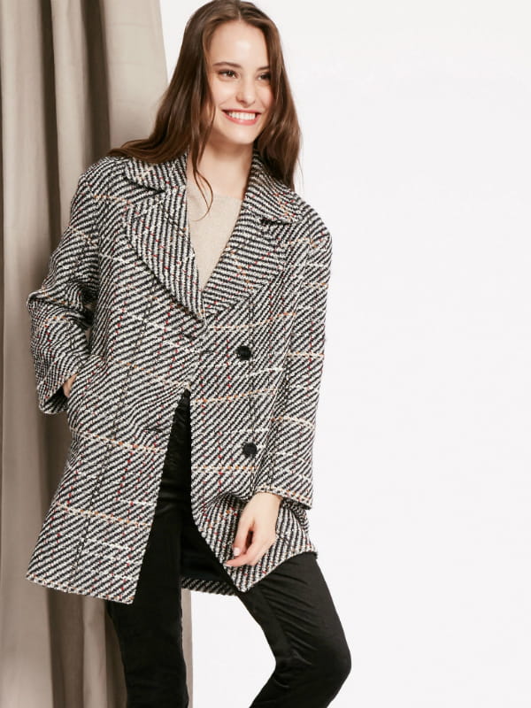 Manteau en laine mélangée motif Prince-de-Galles en all-over style caban de Caroll