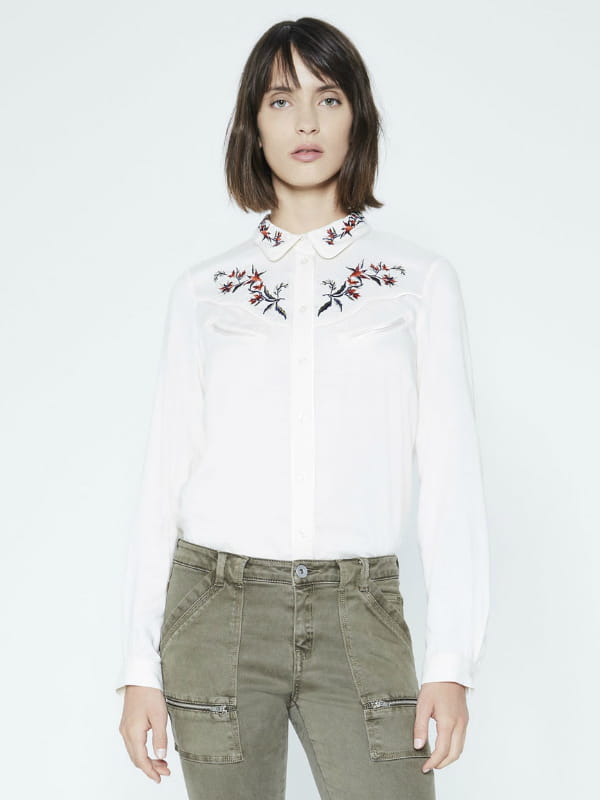 Chemise en coton mélangé de viscose avec fleurs brodées sur le col et plastron de IKKS