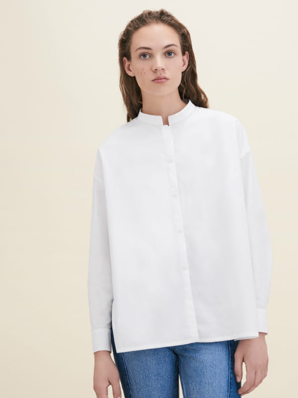 Chemise blanche asymétrique en popeline de coton avec col mao de Maje