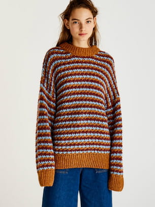 Pull en maille mohair et laine mélangés tricolore de Pull and Bear