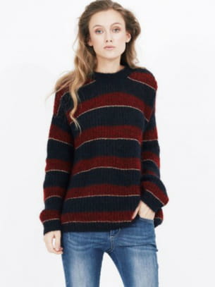 Pull à rayures en mohair et alpaga mélangés marine bordeaux et brillant de Bérénice