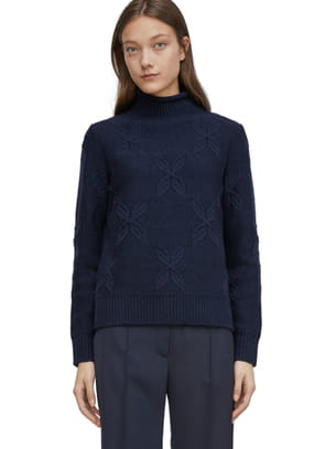 Pull à motifs dans la maille et col montant en laine recyclée bleu marine de Arket