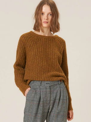 Pull à maille anglaise en mérinos et alpage mélangés couleur érable de Sessùn
