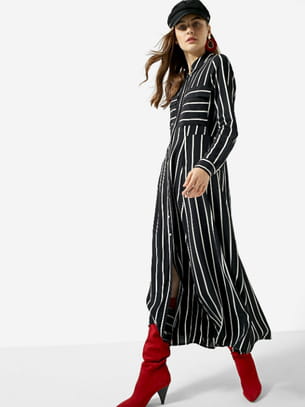 Robe chemise noire à rayures blanches avec boutons sur le devant de Stradivarius