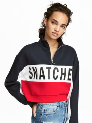 Sweat court bleu blanc rouge floqué avec col camionneur de H&M