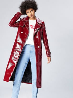Trench-coat en vinyle bordeaux avec fermeture boutonnée et ceinture à nouer de Find.