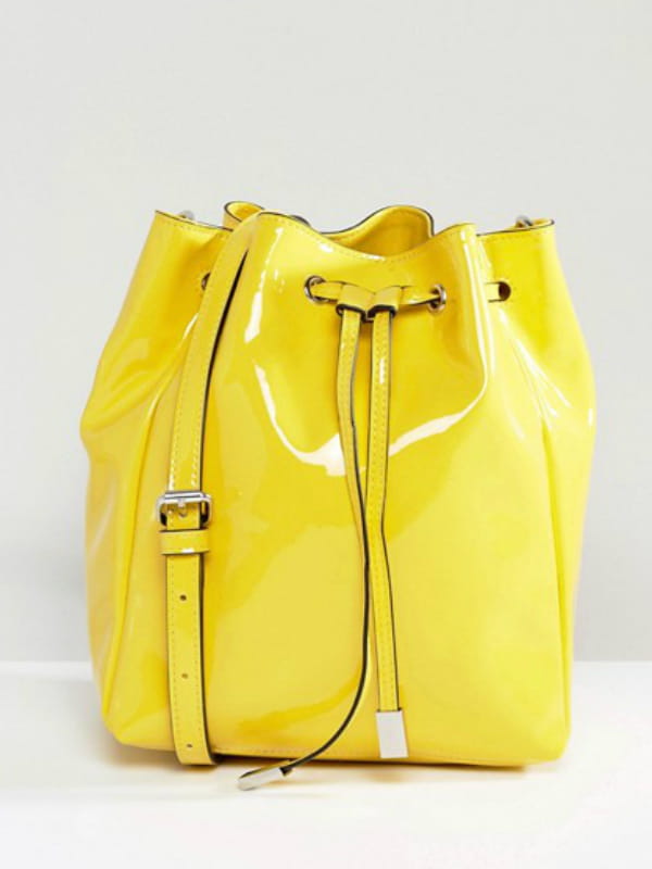Sac à main forme seau jaune avec bandoulière amovible effet vinyle de Asos