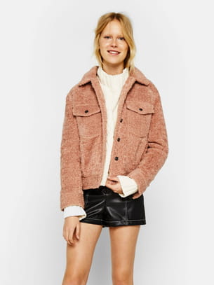 Veste en fausse peau de mouton en coloris vieux rose de Bershka