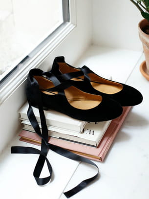 Chaussures plates en velours noir et lacets en satin de Sézane