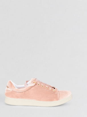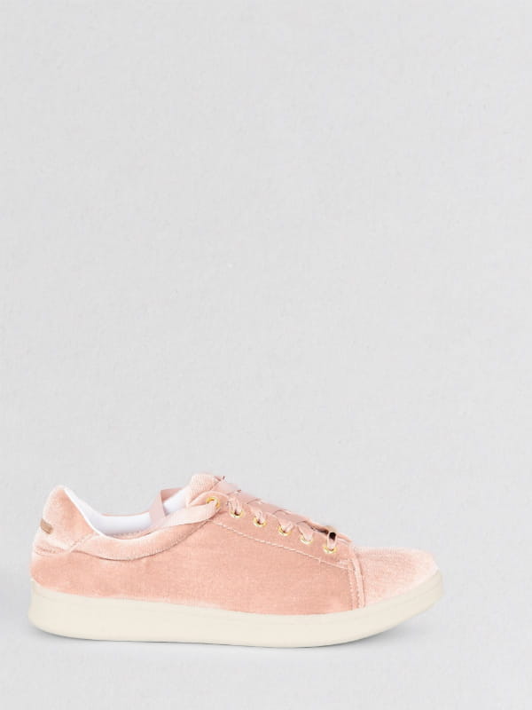 Sneakers en imitation velours rose pâle à lacets de New Look