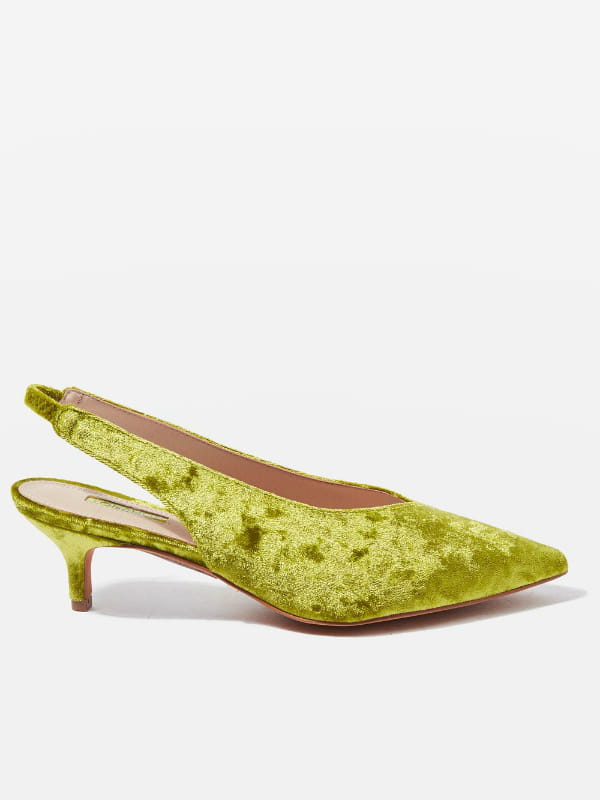 Escarpins à talon bobine en imitation velours jaune de Topshop