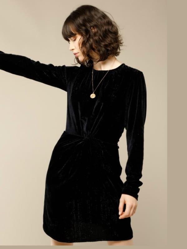 Robe en panne de velours noire à manches longues et longueur mi-cuisse de Rouje