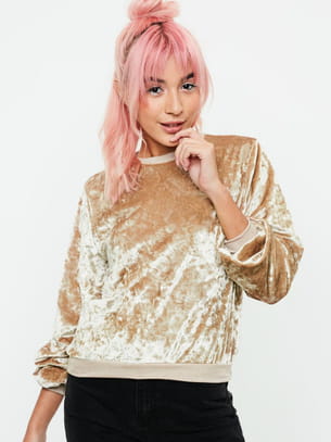 Pull à col rond en imitation velours en coloris doré de Missguided