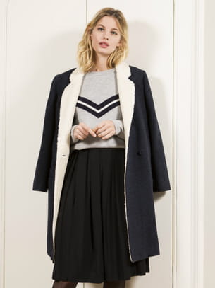 Manteau mi-long doublé en fausse fourrure mouton bleu marine de Cuisse de Grenouille