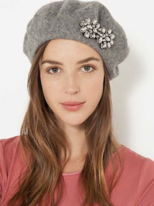 Béret en laine gris avec broche décorative sur le devant de Camaïeu