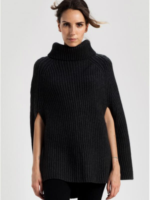 Cape très épaisse noire côtelée 100% cachemire de Cachemire Land