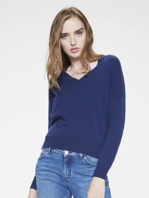 Chandail bleu légèrement oversize 100% cachemire de IKKS