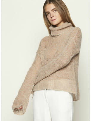 Chandail oversize avec col roulé et manches tombantes et évasées en mohair et coton à effet moucheté de Fine Paris