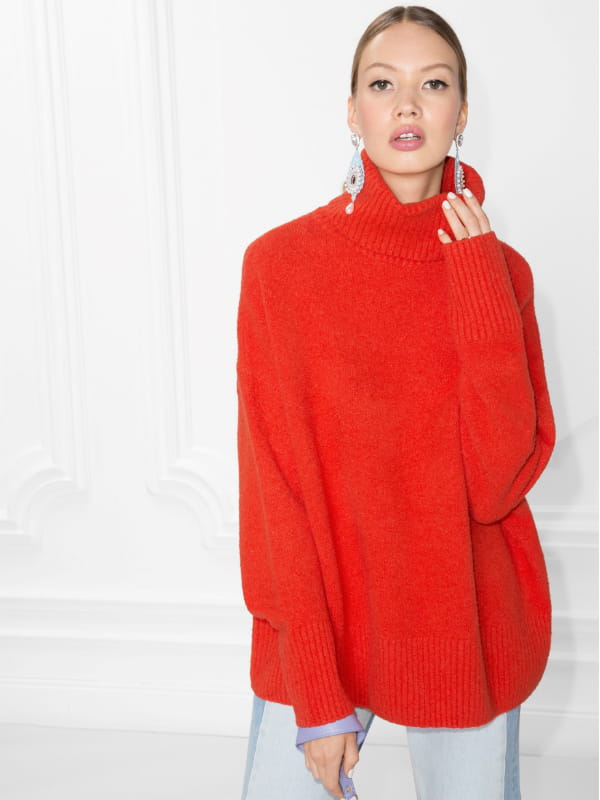 Chandail rouge oversize lumineux à manches longues et col roulé de & Other Stories