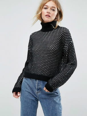 Top à manches longues bicolore à col roulé avec détails de surpiqûres de Asos