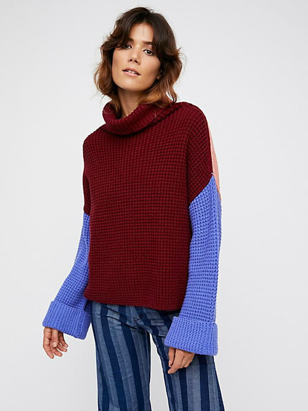 Chandail à manches longues et col roulé oversize multicolore avec manches et dos dépareillé de Free People