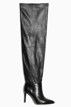 Cuissardes larges à talon en cuir noir de & Other Stories