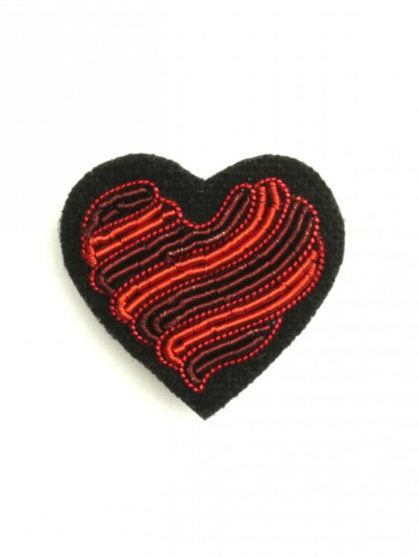 Broche rouge en tissu brodé à rayures en forme de cœur de Macon et Lesquoy